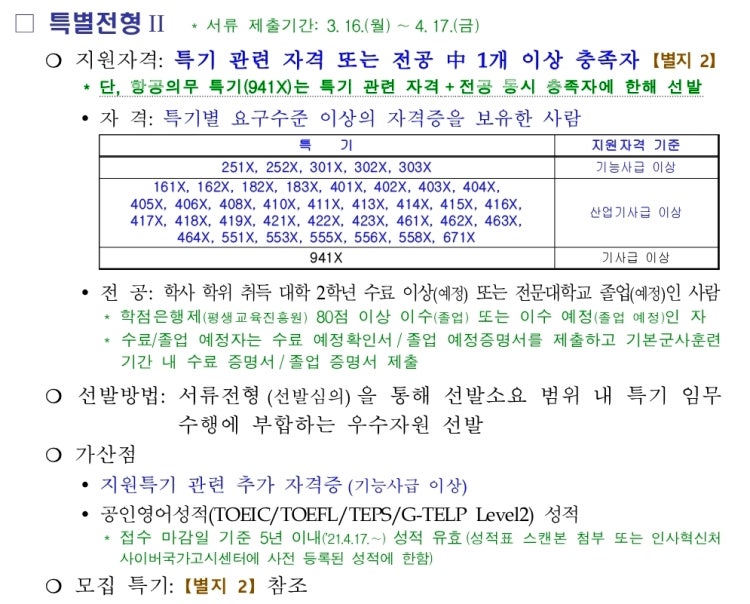 즉, 희망하는 특기로 임관할려면 특별전형으로 지원하는게 유리합니다.